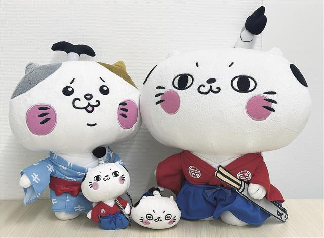 会社の顔となった「だんどり~にゃ」(右)に弟子の「ぺこりーにゃ」のぬいぐるみ 業務用商品「だんどり上手シリーズ」のブランドキャラクターとして誕生した極洋の猫侍「だんどり~にゃ」。いまや企業の顔となる…