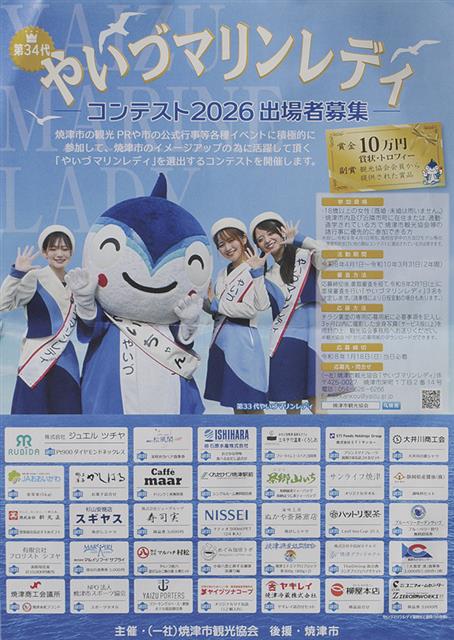 【焼津】(一社)焼津市観光協会は同市の観光PRや公式行事など各種イベントに参加して、市のイメージアップのために活躍する第34代「やいづマリンレディ」3人を選ぶコンテスト2026への出場者を募集して…