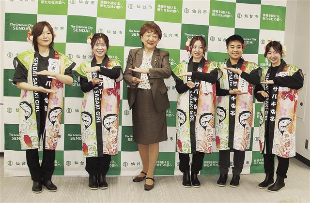 【仙台】昨夏結成された(株)仙台水産の魚食普及チーム「仙台サバキ女子」が27日、発起人として誕生に力を尽くした本田誠社長と仙台市役所を訪れ、郡和子市長にデビュー半年間の活動を報告した。 「仙台サバ…