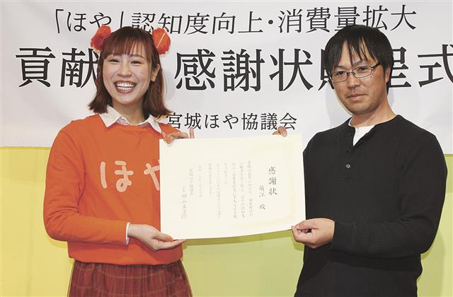 【石巻】宮城ほや協議会(田山圭子会長)は3月31日、ホヤの認知度向上と消費量拡大の貢献者として、ホヤをモチーフにしたアイドル「ほやドル」と銘打ち活躍しているシンガーソングライター・萌江(もえ)さん…