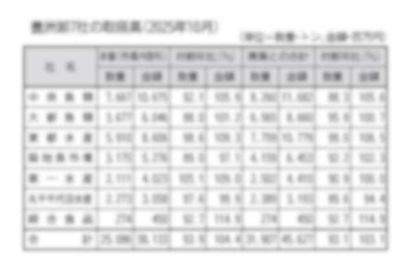 東京・豊洲市場10月の卸会社別取扱高がまとまった。総合卸で扱っている鮮魚・特種は好天に恵まれた9月とは異なるシケ模様となり数量を減らしたものの、1割を超す単価高に助けられる形で売り上げを伸ばした。…