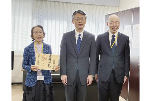 中央魚類(株)最高顧問で元全水卸会長、前豊洲市場協会会長の故・伊藤裕康氏に「正五位」を贈る伝達式が17日、東京・霞が関の農林水産省で行われた。長男・晴彦氏((株)ホウスイ社長)とともに出席した裕康…