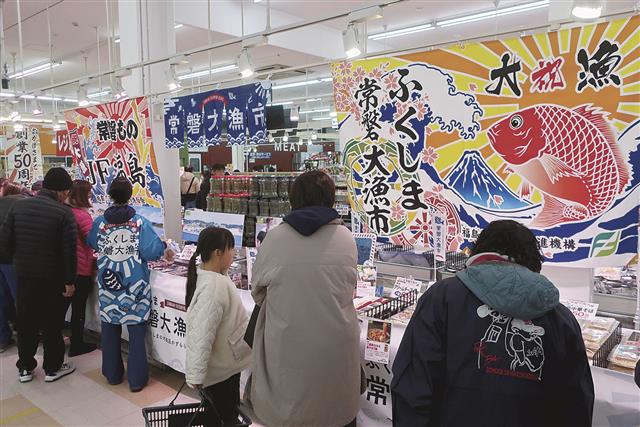 【堺】堺市の堺中央綜合卸売市場内にある「大起水産 まぐろパーク堺本店」(吉田剛店長)で24、25日の両日、「愛媛県フェア」と「ふくしま常磐大漁市」が開かれ、多くの来店客が愛媛や福島の魚介類を買い求…