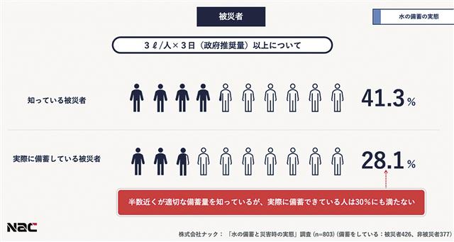 宅配水サービス「クリクラ」を展開する(株)ナック(東京・新宿区、吉村寛社長)はこのほど、「水の備蓄と災害時の実態」調査の結果を発表した。それによると、水の適切な備蓄量を把握している被災者は非被災者…