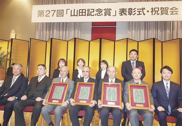 【神戸】兵庫県水産振興基金(会長・齋藤元彦知事、理事長・山田智昭JF神戸市漁協組合長)は5日、神戸市内で第27回「山田記念賞」表彰式を行った。被表彰者は、個人は星尾隆文JF姫路市漁協副組合長、森二…