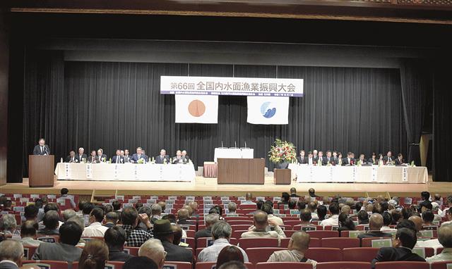 第66回全国内水面漁業振興大会(全内漁連主催、石川県内水面漁連開催担当)がこのほど、金沢市の石川県立音楽堂で開かれ、全国の内水面漁業関係者ら約450人が出席した。 主催者を代表し、全内漁連の谷公一…