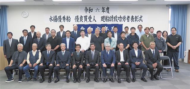 【銚子】JF銚子市漁協(坂本雅信組合長)は11日、銚子漁港第1卸売市場で2024年度の水揚げ優秀船、優良買受人、回船誘致功労者の表彰式を行った。年間水揚げ優秀船51隻、優良買受人15社、回船誘致功…