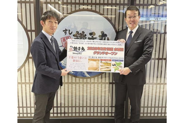グルメ系回転寿司の(株)銚子丸は18日、従来のロードタイプとは違う、都心型ハイブリッド店舗のフラッグシップモデルとして新宿に初出店した。こだわりの千葉県産鮮魚やブランド米・多古米など主に千葉県産の…