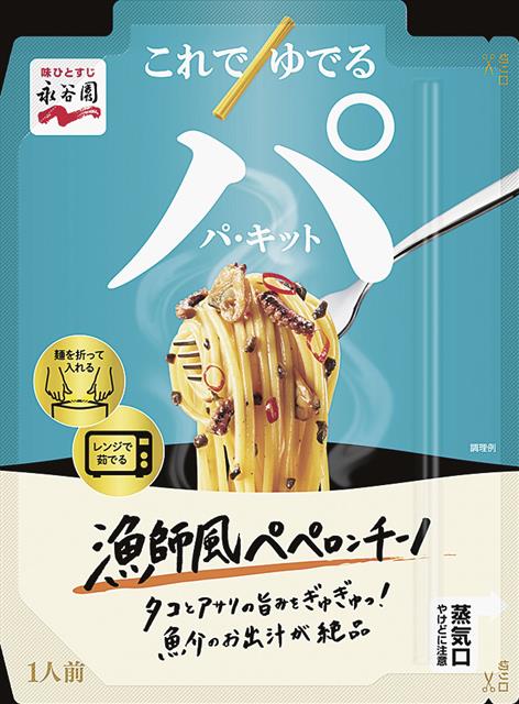(株)永谷園(掛谷浩志社長)は25日から、パスタソースキット「パ・キット」シリーズを刷新し、「漁師風ペペロンチーノ」「たっぷりたらこ」など新たに5種類を全国で発売する。 乾燥パスタの「ゆで」とソー…