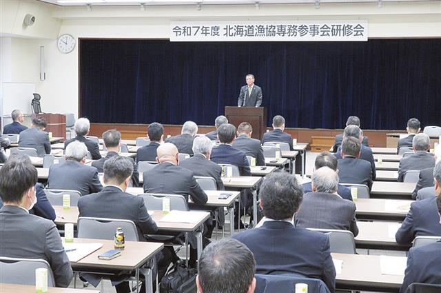 【札幌】北海道漁協専務参事会(会長・蝦名修JF北るもい漁協専務)は20日、札幌市の第2水産ビルで2025年度研修会を開催した。道内漁協の専務や参事、約100人が出席し、フリーアナウンサーの笠井信輔…