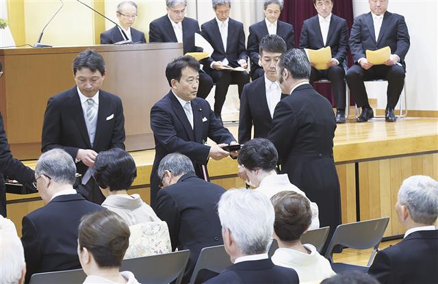 農林水産省は20日、同省講堂で2025年春の勲章伝達式を行い、笹川博義副大臣から勲章が手渡された。水産関係では元JF三重漁連会長の永富洋一氏が旭日小綬章、元JF兵庫漁連副会長の東根壽氏らが旭日双光…