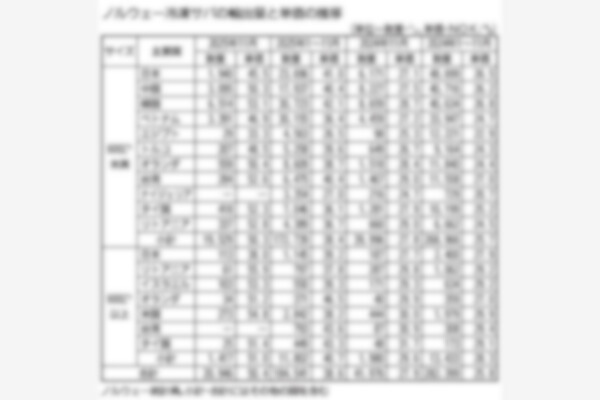 ノルウェー統計局によると、11月の冷凍サバ輸出量は前年同月に比べて50・1%減の2万946トンだった。注目される輸出平均単価は、80・5%高のキロ50・4NOK(ノルウェークローネ)と初めて50N…