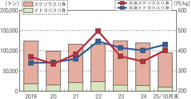 全国すり身協会(会員5社)が発表した昨年11月の北海道産陸上スリ身生産は、スケソウ・ホッケとも水揚げが振るわない中で低調に推移した。一方、出荷は同時期としてはまとまり、高水準にある月末在庫の消化が…