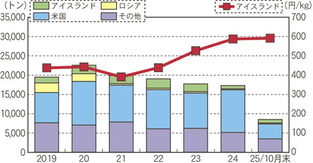 米連邦政府の閉鎖により、現地23日現在でも米国海洋漁業局(NMFS)が週間で発表するDAP情報が、9月20日付を最後に途絶えたままとなっている。主力ベーリング・アリューシャン海域のスケソウ漁期は1…