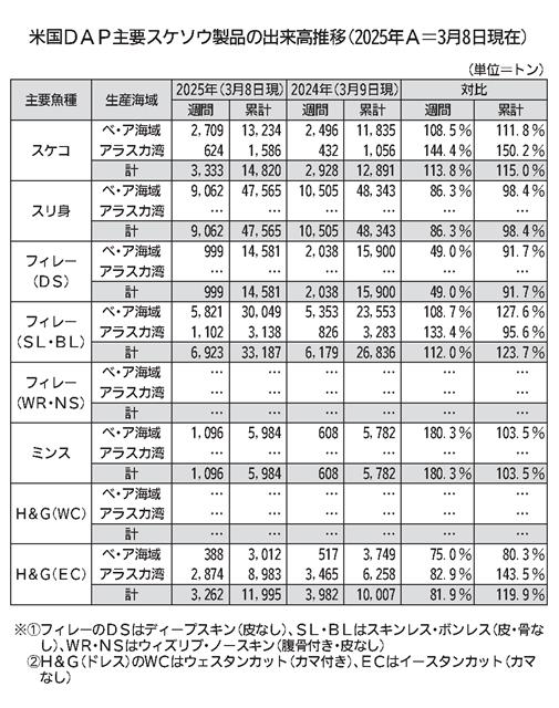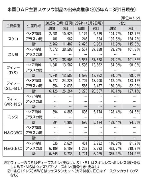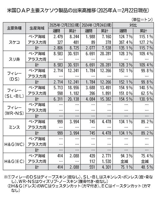 全国すり身協会(北海道網走市、会員5社)が発表した2月の北海道産陸上スリ身生産量は、漁獲が低調な中、2016年8月以来の2ケタ台と低調さが際立った。そのため出荷が優位となり、在庫の軽減が加速した。…