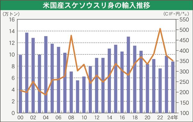 ねり製品にとって欠かせない米国産スケソウスリ身の価格は依然として高値で推移している。30年ぶりの高水準となった2022年のピークから落ち着いたものの、ねり製品メーカーの経営を圧迫する状況は変わらず…