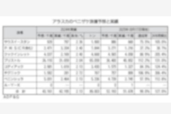 アラスカのサケ・マス漁は、ベニの漁獲が大方終了し、豊漁年のマスは佳境を迎えているが、ベニがおおむね豊漁で終える一方、マスは伸びを欠く展開が続いている。(別表参照) 米国アラスカ漁業狩猟局(ADF&…