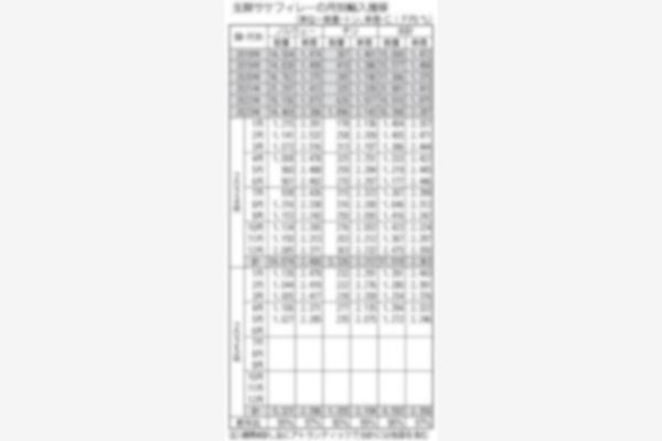 財務省の輸入通関統計によると、空輸による5月のサケ・マスの買い付けは引き続き前年を大きく上回った。主力のノルウェー産アトランティックがボトム(大底)だった前年の3倍以上と回復し、調達単価も順調に値…