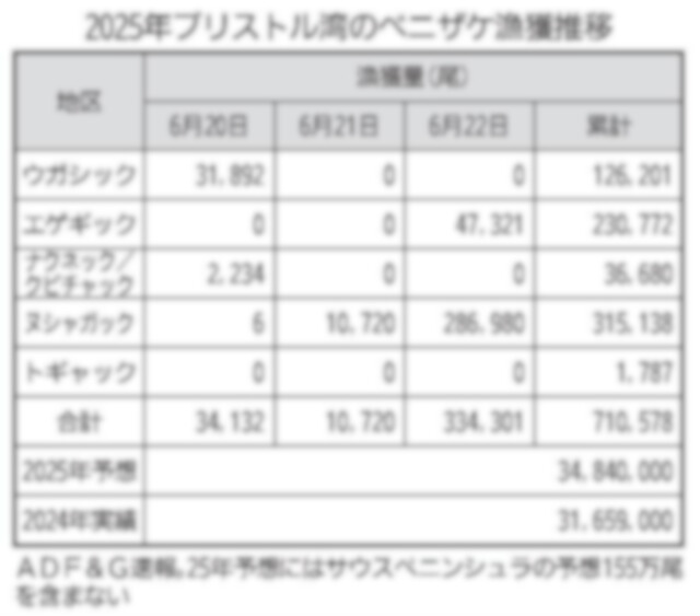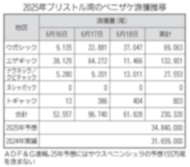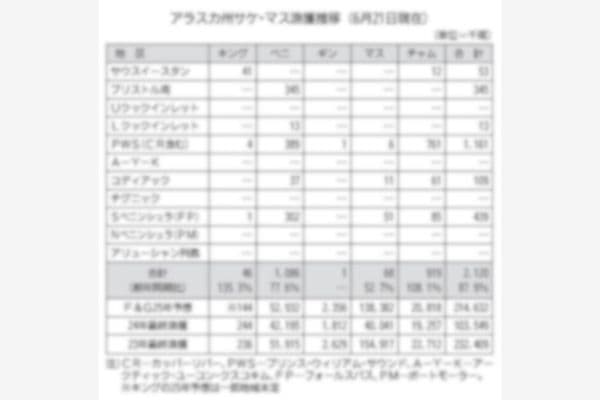 アラスカ・ブリストル湾のベニザケ漁は序盤からまとまり始めており、すでに前年の5倍を超えて早くも近年の豊漁ペースをうかがわせている。半面、好漁予想だったカッパーリバー(CR)は頭打ちとなり、クックイ…