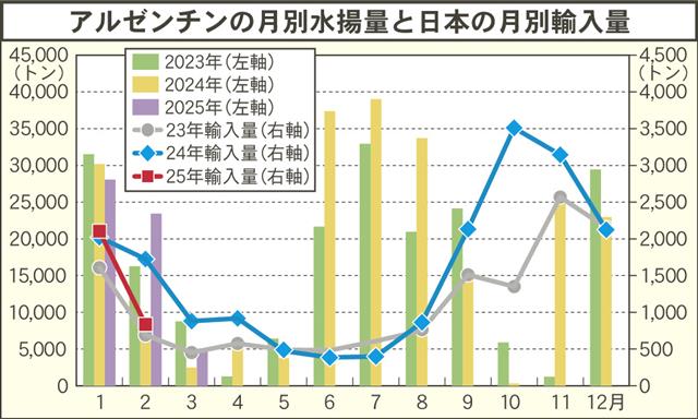 アルゼンチンアカエビのL1(キロ10~20尾)サイズやそれ以上の大型が漁獲される北部漁場の本格的な操業見送りのまま、政府が管轄するナショナル海域の試験操業が始まろうとしている。2024年の日本の輸…