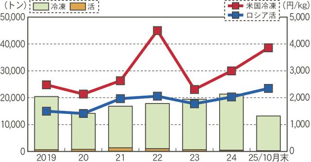 米国海洋漁業局(NMFS)がこのほど発表した9月のエビ類の輸入量は前年同月比10・8%減の6万3421トン、金額では7・8%減の5億2758万ドルだった。トランプ大統領が導入した「相互関税」の影響…