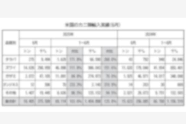 米国海洋大気庁(NOAA)の貿易統計によると、米国が6月に輸入したカニ製品は好調で、カナダ産ズワイを主体に引き続きまとまった。1~6月上半期でも前年同期を上回り、特に単価高による輸入金額の増加が目…