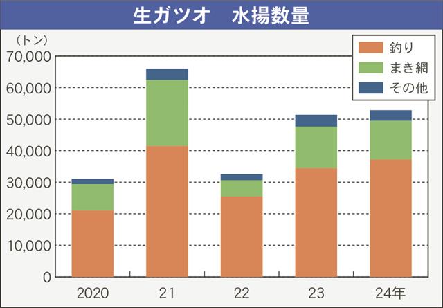 漁業情報サービスセンター(JAFIC)が運営している「おさかなひろば」によると、全国の主要調査港における昨年の生鮮カツオ水揚げは5万2801トンで前年比3%増と、2年連続で5万トンを上回った。近年…