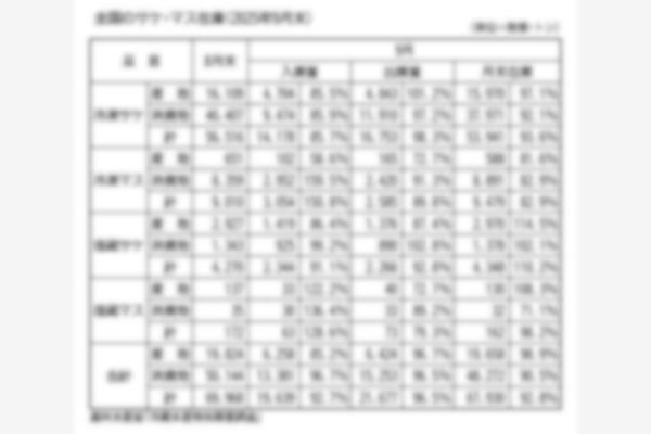9月末のサケ・マス在庫は秋サケ漁の不振などで入庫が大幅に減少し、月末在庫としては2010年以降の記録で最低を更新した。3年ぶりに7万トンを割り込んだ8月末よりさらに減少し、回復の見通しが立たない状…