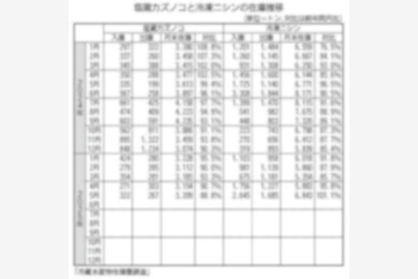 農林水産省の冷蔵水産物在庫量調査によると、5月末の塩カズノコと冷凍ニシンの全国在庫は引き続き低水準で推移したが、ニシンは入庫がまとまり、ほぼ2年ぶりに前年をわずかに上回った。(別表参照) 【塩カズ…