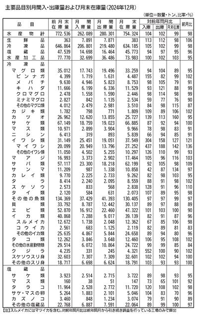 農林水産省が2月末に発表した冷蔵水産物在庫量調査によると、全国主要冷蔵庫の12月末在庫は、前年同期をわずかに下回る75万4324トンだった。2か月連続で出庫優勢となり、前年を下回るのは4か月連続と…