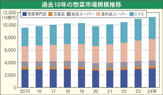 日本惣菜協会(平井浩一郎会長)が4月28日に発表した中食・惣菜業界の国内市場の調査によると、2024年惣菜市場規模(速報)は、11兆2882億円(前年比102・8%)で4年連続して増加し、初めて1…