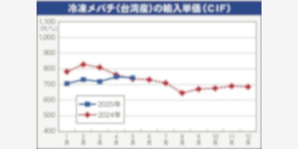 財務省の貿易統計によると、マグロ類5月の輸入実績は生鮮・冷蔵物が266トン(前年同月比24%減)、4億5700万円(11%減)、冷凍物は1万7740トン(15%増)、191億2600万円(5%増)…