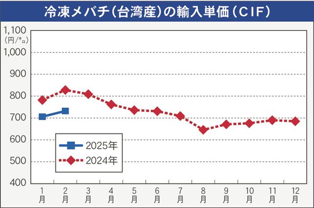 財務省の貿易統計によると、マグロ類2月の輸入実績は生鮮・冷蔵物が202トン(前年同月比9%増)、3億9800万円(22%増)、冷凍物は1万4802トン(16%増)、179億8400万円(6%増)、…