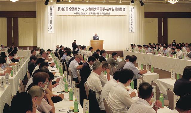 北海道水産物荷主協会(会長・根田俊昭マルキチ社長)主催の「第46回全国サケ・マス・魚卵大手荷受・荷主取引懇談会」が8月上旬、札幌市で開催された。道内の荷主、生産者、全国の荷受、商社の関係者ら約25…