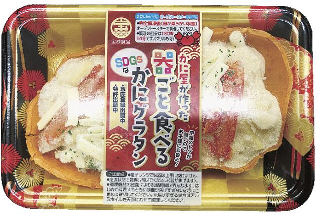 宝成食品(株)(八戸市)の目玉商品は「器ごと食べるSDGsなかにグラタン」だ。カニグラタンの器となる甲羅を小麦粉などで作り、丸ごと食べられるようにしたオリジナリティーあふれる一品で、おいしさに加え…