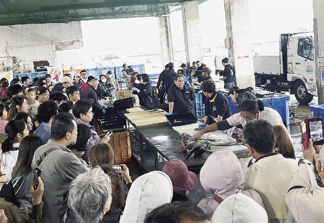 沖縄本島南東部に位置するJF知念漁協(南城市)では、4月21日の「もずくの日」にモズクのつかみ取りイベントを開催した。100円で袋に詰め放題にしたところ、120キロ用意したモズクが開始20分でなく…