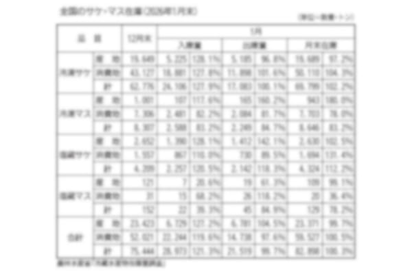 鮭卵在庫1月末 入・出庫とも縮小し、前年以下に