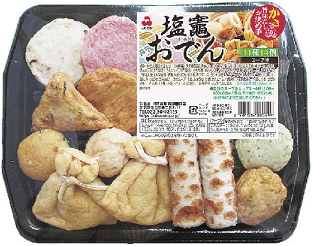 (株)阿部善商店のいち押しは「塩竈おでん」。よりすぐりの具材11種14個とオリジナルスープを詰め合わせた秋冬の看板商品で、発売から十余年経た今もおいしさやボリューム感、ご当地感あふれるネーミングが…