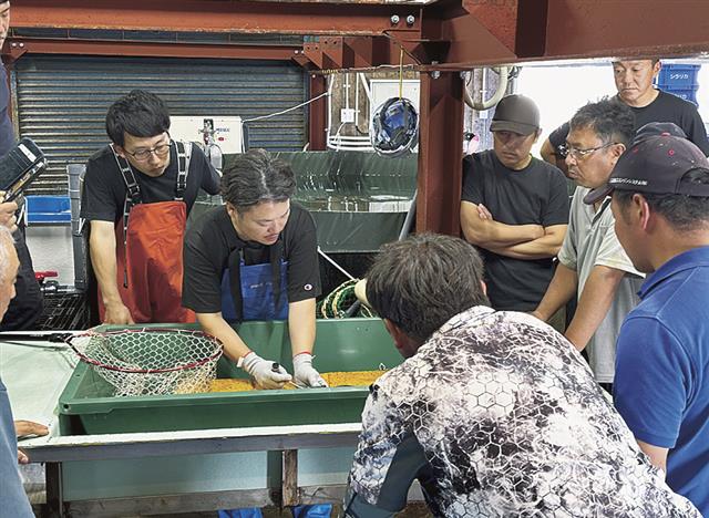 石巻魚市場でAI魚種選別機の実証試験 水産関係者が見学