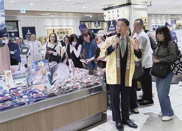 高知県は県農水産品や観光情報を発信する「高知フェア」を7~13日に東京・渋谷区の新宿髙島屋で開いた。生鮮売場の中島水産(株)ではカツオのわら焼きなどを販売。10日は高知県立高知海洋高校生の「ツナガ…