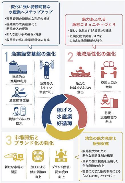 福井県は現在、2025~29年度の県内水産業の指針「地域とともにふくいの水産業のあしたに架ける基本計画」に基づいて各種の施策に取り組んでいる。基本理念の「持続可能な魅力あふれる稼げる水産業へ」の実…