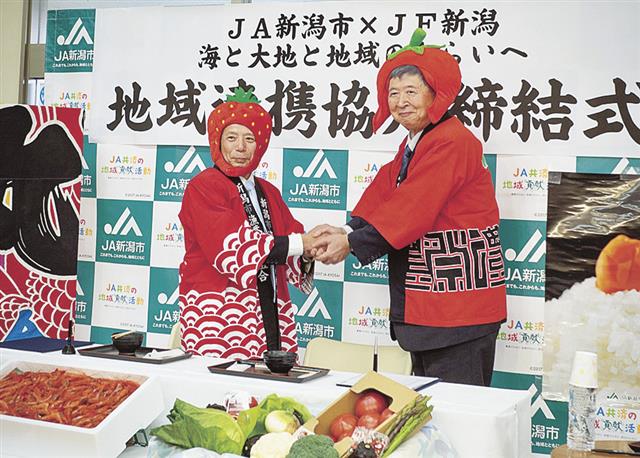 JF新潟漁協(土屋貞男組合長)とJA新潟市(長谷川富明組合長)は23日、地域漁業・農業の持続的な発展と地域活性化に向けた地域連携協定を締結した。漁協・農協が地域連携協定を結ぶのは県内では初めて。イ…