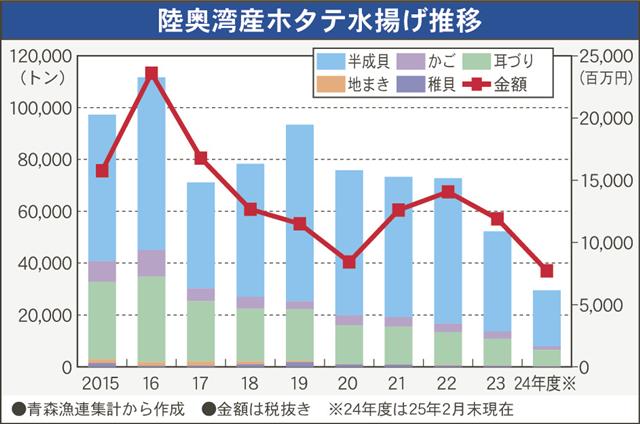 【室蘭】北海道噴火湾地区・胆振側のJFいぶり噴火湾漁協の今シーズン(2024年10月~25年5月)のホタテ加工貝水揚げは、15日現在で前年同期を1割ほど下回る5261トンとなった。同漁協では最終的…
