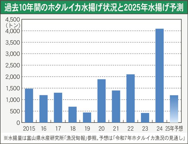 ホタルイカ定置網漁の本格化を前に富山県農林水産総合技術センター水産研究所は2月28日、2025年漁況の見通しを発表した。前年は11年以来の全国1位を奪還する大獲れとなった富山湾ホタルイカだが、今年…