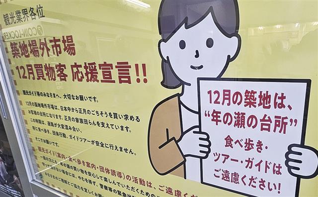 食材の買い出しや訪日客らで混雑する東京・築地場外市場で12月、観光ガイドの案内を控えるよう異例の呼び掛けを行っている。年末には観光客が殺到してすし詰め状態となり、けが人が出ているためだ。一方、東京…