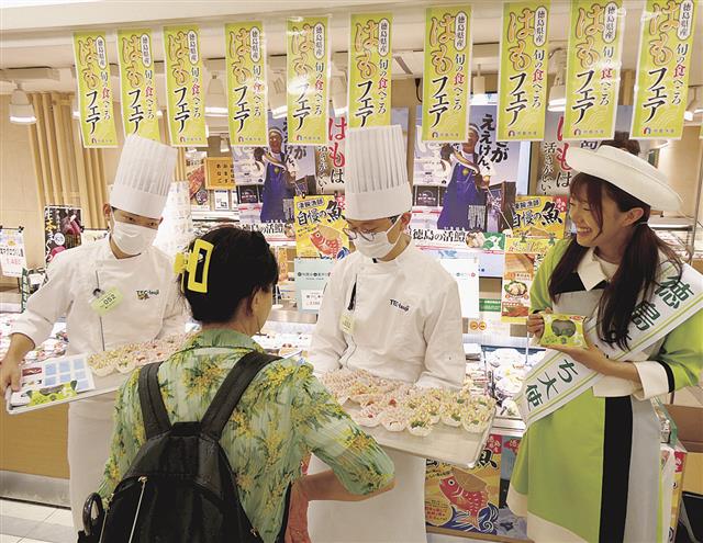 【京都】徳島県水産物ブランド推進協議会(会長・久米順二JF徳島漁連会長)は祇園祭の時期に合わせて6日、京都市の百貨店・大丸京都店地下1階鮮魚売場「中与志」でブランドハモ「徳島の活鱧」をアピールした…
