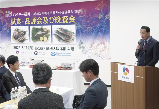 【大阪】韓国水協中央会(ノ・ドンジン会長)は17日、大阪市北区の在日本大韓民国民団大阪府地方本部4階で、ホテル、レストラン、カフェなど飲食業界バイヤーらを対象に、試食・品評会と晩餐(さん)会を開い…