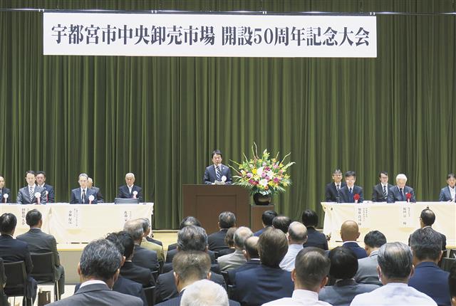 【宇都宮】宇都宮市中央卸売市場は8月30日、市内のライトキューブ宇都宮で開設50周年記念大会を開いた。1975年6月の開場以来「流通の中核的な拠点、地域経済の中心として新鮮で高品質な生鮮食料品を市…