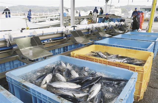 【千葉・勝浦市】千葉・勝浦港の生鮮カツオ水揚げ用に設けられた4ブースのうちの1ブースに、北欧メーカーの高速重量選別機の“勝浦オリジナル”仕様の改良機が導入されて丸1年がたった。決して広くはない岸壁…