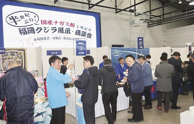 母船式捕鯨の共同船舶(株)(所英樹社長)は5日、福岡市中央卸売市場鮮魚市場(長浜鮮魚市場)の魚食普及推進施設「うおざ」で、市場関係者、小売、飲食業界向けに国産ナガスクジラを中心とした「福岡クジラ展…